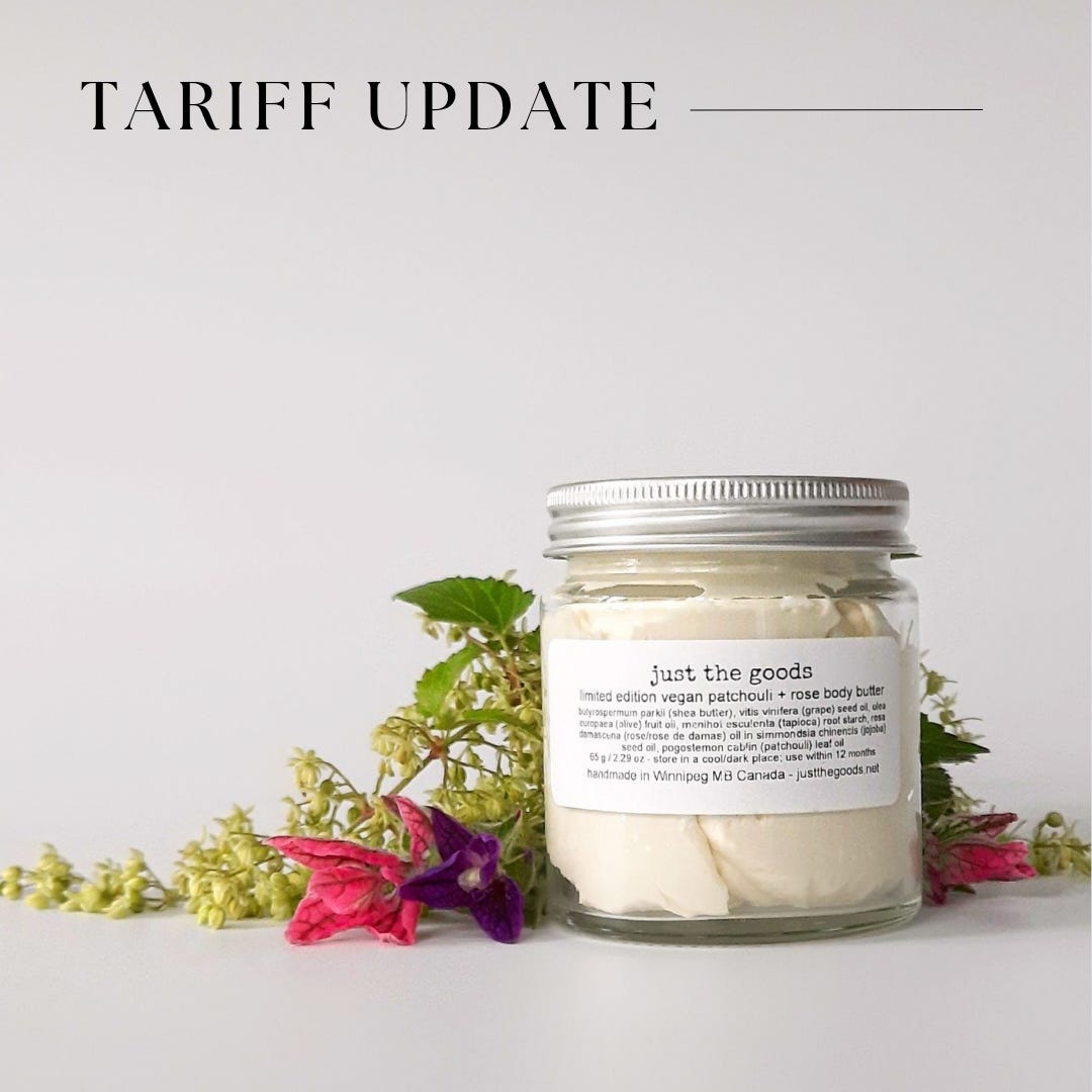 The last thing I want is for this newsletter to induce panic -- maybe we’ll get lucky and this change will not come to be? Having said that, I’m heartbroken over the idea of potentially needing to increase Just the Goods’ public wholesale product pricing to cover the cost of tariffs and new customs-related administrative fees.